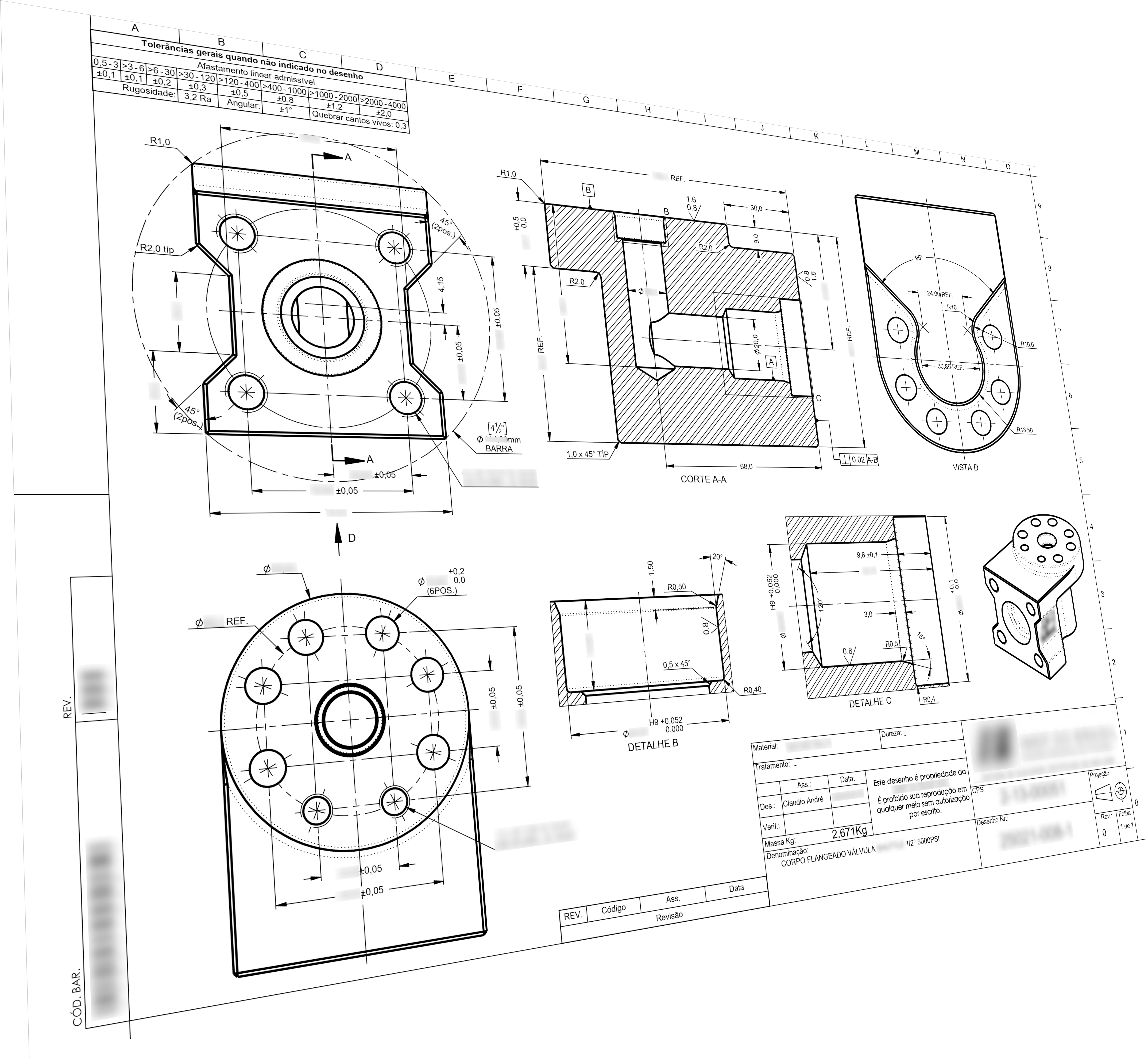 Desenvolvimentos de projetos mecânicos, hidráulicos, pneumáticos, eletroeletrônicos, com elaboração de memorial de cálculos e demais documentos gerenciais.